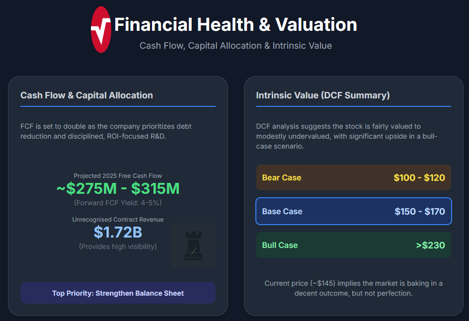 A hidden strength in Masimo’s financial profile is its $1.72 billion in unrecognised contract revenue from multi-year sensor agreements with hospitals. This significant backlog provides excellent visibility and lowers risk in cash flow projections. Overall, Masimo’s cash flow profile is poised to improve markedly with higher earnings and the shedding of its cash-draining consumer division. Capital allocation is now aligned with shareholder interests, prioritising core business growth and debt paydown. Strong insider alignment (evidenced by significant ownership and a recent board member's open-market share purchase after a stock dip) suggests confidence that management will deploy cash to enhance shareholder value.