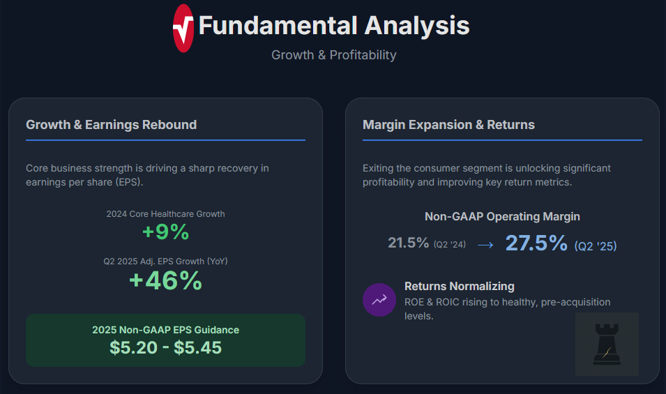 For fiscal year 2025, the company guides for $1.50–$1.53 billion in healthcare revenue, representing +8–11% constant-currency growth. While total reported revenue will appear to shrink due to the Sound United divestiture, opportunities exist to accelerate growth in areas like capnography through better commercial execution. Analyst estimates currently seem conservative, factoring in the divestiture. A reasonable base-case assumption is for mid-single-digit organic growth, driven by continued hospital adoption and new product introductions.